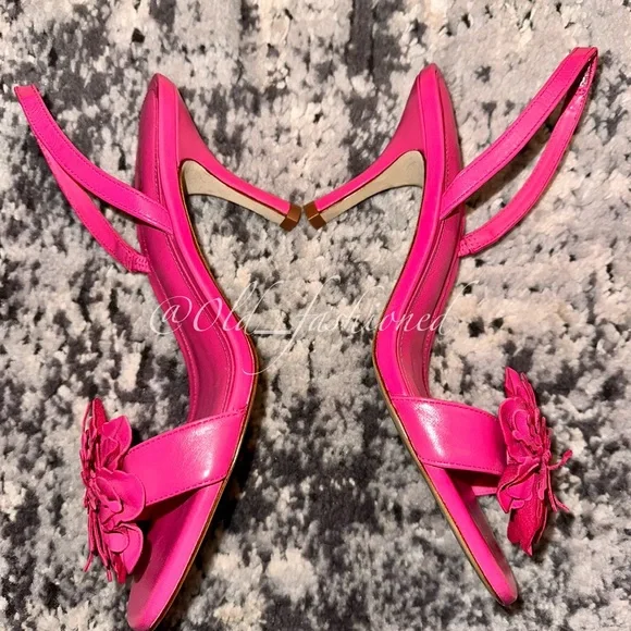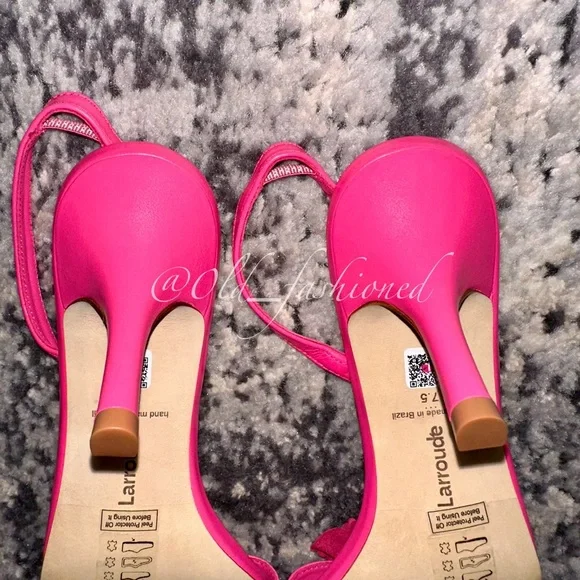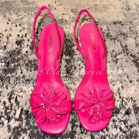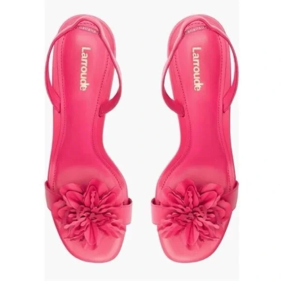 Larroudé Hibiscus Heeled Slingback Sandals in Magenta Sz 7.5Brand new with tags. No box. Larroudé dust bag included.MSRP $350.A dimensional flower embellishment makes a fun, fresh statement on this slingback sandal. Memory foam cushioning makes it incredibly comfortable to wear.DETAILS:• About 3 3/4" heel• Elasticized slingback strap• Memory foam cushioning• Leather or textile and leather upper / leather lining and sole• Made in Brazil💖 NEW POSHER? SIGN UP WITH INVITE CODE 0LD_FASHIONED FOR $10 OFF YOUR FIRST POSHMARK PURCHASE 💖🌼I only sell 100% authentic items. Receipts of purchase are available upon request for verification purposes.🌼My photos are taken inside with a flash unless indicated otherwise. If you need additional photos, please drop a comment or DM me!🌼All measurements are approximate. I may reuse packing materials.🌼Dog friendly & smoke free home. I use fragrance free detergent on used items.